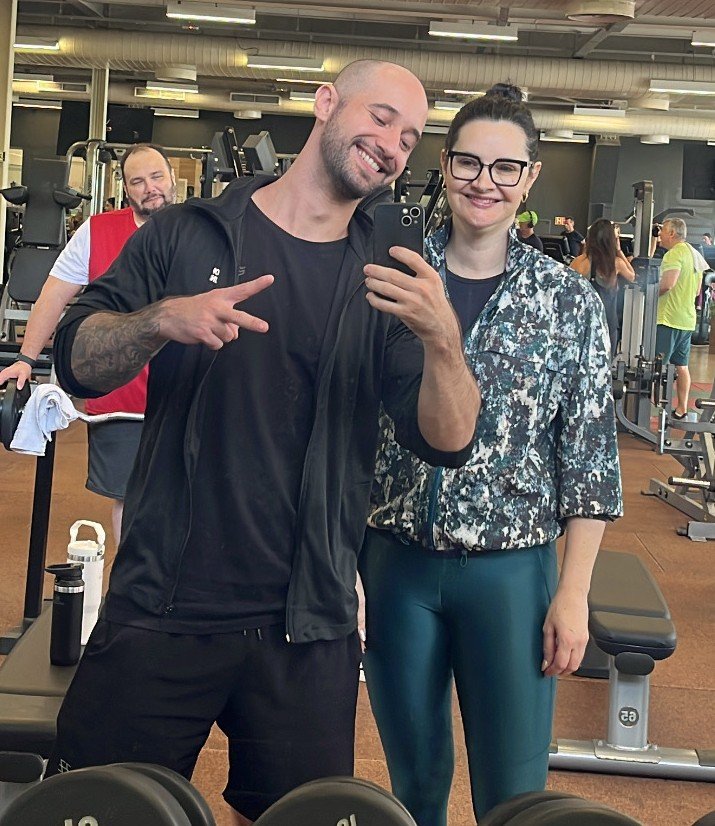 “Antes eu desistia fácil. Com o Vini, isso mudou. Ele é paciente, entende minhas dificuldades e me incentiva de uma forma que ninguém nunca fez. O treino virou meu momento favorito do dia!”